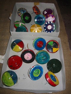 いろいろな年齢の子どもたちと、折り紙や切り紙、コマにペイントしてコマ回し、