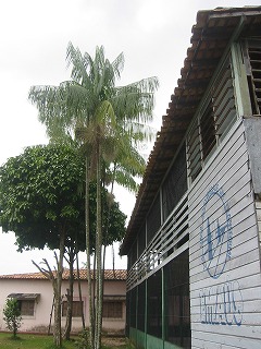| <EMAUSへ> べレンへ到着して5日目の朝、私のペンシオナット(宿泊先)まで迎えに来てくれたEMAUSのエドゥカドーラであるルシアと共にバスに乗り、ジュルーナスのEMAUSへと向かった。 景色を楽しむ余裕もなかった私に、ルシアは有名な場所や、目印となる建物などを丁寧に教えてくれた。 バスの車内アナウンスはないので、ルシアが教えてくれることを聞きながら、 次から次へと移り変わる景色を目を凝らして見ていた。 「なんとか次から一人でいけるかな?」と思っていたら、バスが右へと曲がった。 すると、ルシアが「もうすぐ!」「この建物があって、この看板があって。」と言って、少し進んだところで降車を知らせるための紐を引っ張り、バスが止まった。 降りたところには、色とりどりの果物がおいしそうに並ぶ小さな果物屋さんがあった。 道路を挟んだ向かい側には、EMAUSの塀がもう見えていた。 ・・・ペンキが、すっかり剥げてしまっている。。。 門をあけてもらい、敷地内へルシアと入るとすぐ建物が目に入った。 建物もペンキが剥げてしまっていて、塗り替えたらもっとあたたかくかわいい雰囲気になるだろうなぁ。。。と思いながらアルチの建物へ向かった。 |
