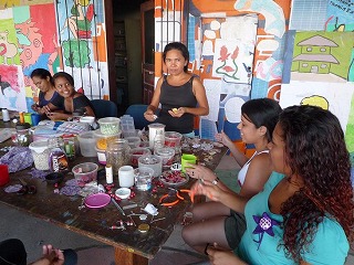 最後にいくつか、私がエマウスの活動の中で感じたことを書きます。ルシアがアルチの学期初めの話し合いで、女の子たちに何をしたいのか自分の意見を持ち、それを伝えること、何かを習うためには講師を雇うことが必要で、来てもらうからには、彼女たちが継続して参加することと、技術を習得し生活に生かしていくことが大切だと語っていました。収入につながる技術を習得することは、将来のためにとても重要だと思います。ただ、そのような活動とともに、結果を評価されない、彼女たちの心が喜ぶ、自身のためだけの芸術活動を取り入れることもよいのではないかと思います。もう少し長く滞在していたら感じ方は違うと思いますが、彼女たちを取り巻く環境や心の問題を扱っていくには、少し余裕がないように感じました。私はポルトガル語で説明したり、理解したりすることがまだよくできないので、あくまで限られた情報の中で感じたことしか書けません。また、エドゥカドーラのルシアとダリバウド以外のスタッフは、今年の6月から新しく集められた半年から1年契約の人達で、7月に長い休暇があり、これから活動がスタートする切り替わりの時期だったということも影響があると思います。