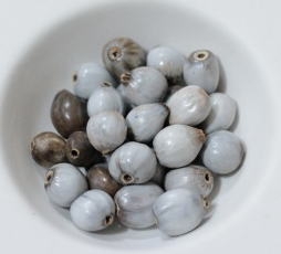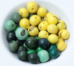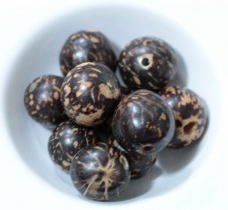 椰子の実の一種。アサイーよりも大きく、茶色のまだら模様の軽いビーズです。